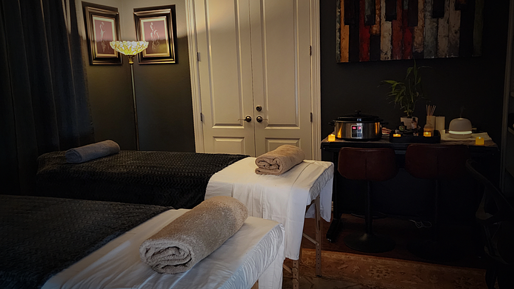 Casa dell'Amore is a private bed and breakfast offering 2 suites and a spa studio. To learn more about our Airbnb, please vist Casa dell'Amore. The spa studio is equipped with 2 massage tables, linens, assorted towel sizes, oils, a diffuser with various essential oils and streaming spa music. This room is available to guests staying 2 or more nights only. We offer a complimentary individual massage by your host Jim, and for a fee, a 4 Hand Massage and a Couples Massage by your hosts Jim and Patty. We look forward to serving you through a very rejuvenating and peaceful experience.